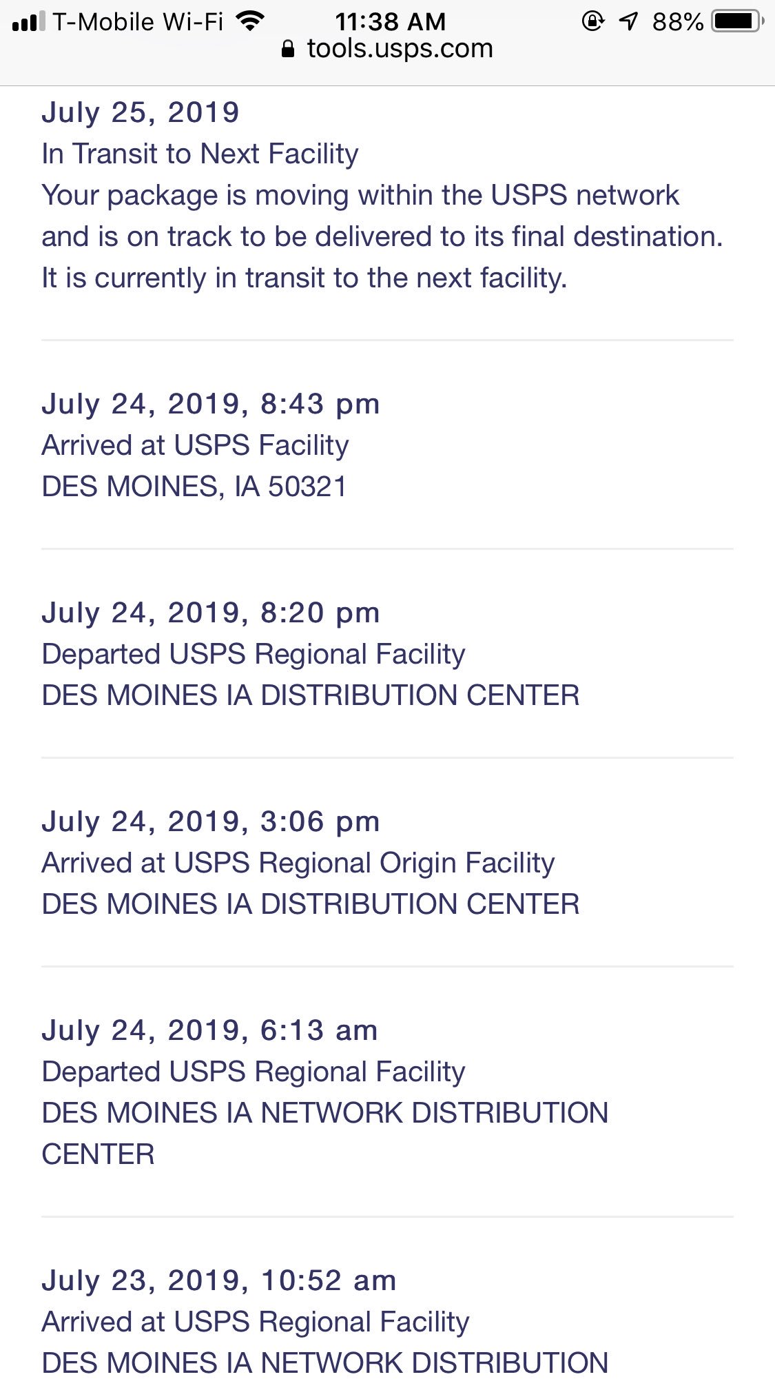Departed usps facility des moines ia 50395 your item departed our usps facility in des moines ia 50395 on december 20 2014 at 2 36 am.